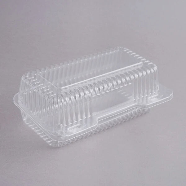 Send hoagies, strudels, hot dogs, and other delicious food home with your customers in this clear hinged container! Measuring 9" x 5" x 3", this container is perfectly sized for a wide variety of products. It is a tremendous addition to delis, supermarkets, cafes, and virtually any other operation that offers take-out.